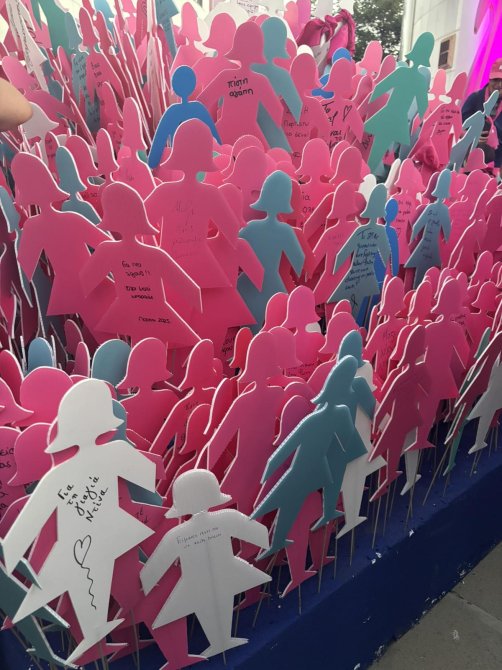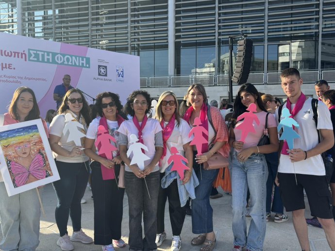 Μαθήτριες/-τες και καθηγήτριες του σχολείου μας ένωσαν τις φωνές τους και περπάτησαν στην Πορεία με τις Ροζ Φιγούρες, στέλνοντας ηχηρό το αίτημα της διεκδίκησης καλύτερων συνθηκών για όλους τους ασθενείς με καρκίνο του μαστού αλλά και της αξίας της έγκαιρης πρόληψής του.