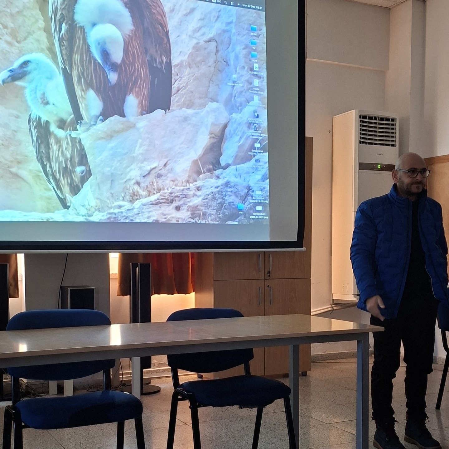 Στο πλαίσιο του θεματικού κύκλου του μαθήματος των Νέων Ελληνικών Β΄ Λυκείου «Οικολογία», οι μαθητές και οι μαθήτριες της Α΄ και Β΄ τάξης παρακολούθησαν μια εξαιρετικά ενδιαφέρουσα ομιλία, με σπάνιες φωτογραφίες και βίντεο, από τον κ. Γιώργο Παπαπέτρου, φυσιοδίφη και επαγγελματία φωτογράφο άγριας φύσης, που αφιερώνει τη ζωή του στην απεικόνιση προστατευόμενων ειδών και αποδημητικών πουλιών της Κύπρου όπως ο γύπας, ο αετός Bonelli, η χελώνα, η κουκουβάγια και τα εμβληματικά αγρινά.