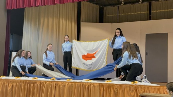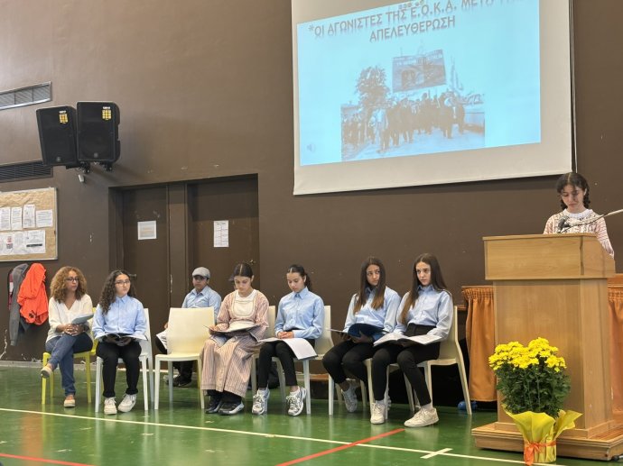 Στις 30 Σεπτεμβρίου 2025, το Σχολείο μας τίμησε την Επέτειο της 1ης Οκτωβρίου με εκδήλωση που ετοιμάστηκε από ομάδα φιλολόγων του Γυμνασίου Σολέας διανθισμένη με πεζά και ποιητικά κείμενα, τραγούδια και χορούς.