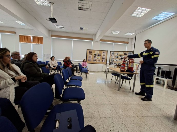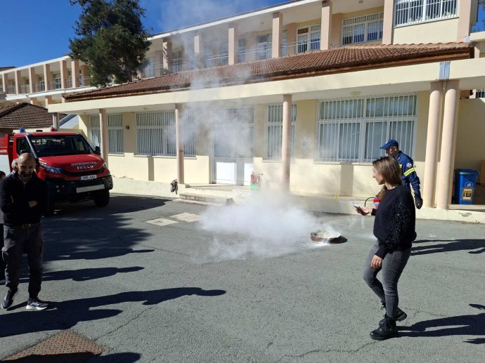 Τη Δευτέρα, 9 Μαρτίου 2026, στο πλαίσιο της επιμόρφωσης των εκπαιδευτικών σε θέματα ασφάλειας, οι εκπαιδευτικοί της ομάδας πυρόσβεσης του Λυκείου και Γυμνασίου Σολέας παρακολούθησαν μια ιδιαίτερη ενδιαφέρουσα και ωφέλιμη διάλεξη για τα είδη των πυροσβεστήρων από τον Αρχιπυροσβέστη κ. Γιώργο Φλαούνα και τον Δόκιμο πυροσβέστη κ. Αντρέα Τσαγγάρη του Πυροσβεστικού Σταθμού Ευρύχου. Οι εκπαιδευτικοί ενημερώθηκαν για τα τρία βασικά είδη πυροσβεστήρων (νερού, διοξειδίου του άνθρακα και σκόνης) και τις περιπτώσεις που ενδείκνυται να χρησιμοποιηθούν. Στη συνέχεια, παρακολούθησαν ένα πραγματικό αλλά ελεγχόμενο επεισόδιο φωτιάς και δοκίμασαν να χρησιμοποιήσουν τον πυροσβεστήρα σκόνης για την κατάσβεσή της. Η κατάσβεση της φωτιάς έγινε με επιτυχία!